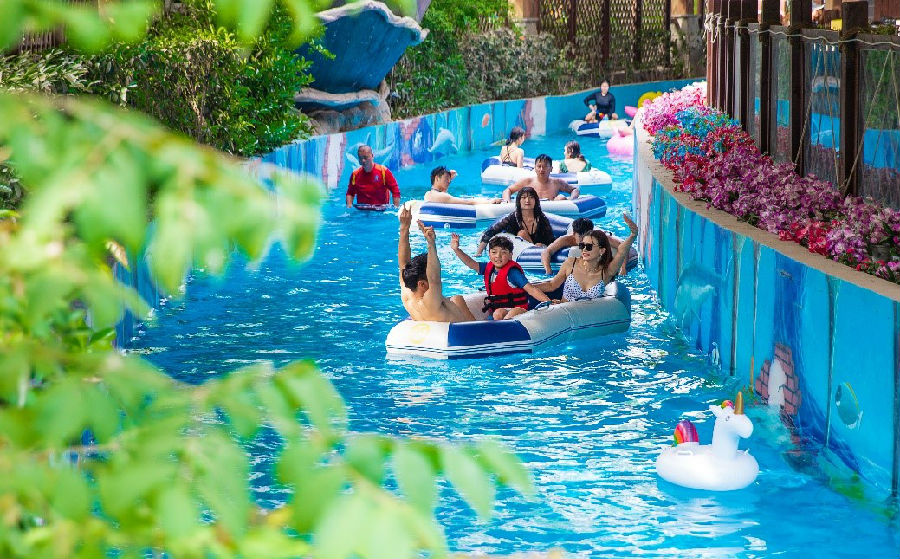 樂園引進多項國際先進的大型水上游樂設備,擁有《颶風灣》《飛躍河谷》《翻江倒海》《大喇叭》《超級碗》《叢林漂流》《熊出沒水寨》等16大特色水上項目,并創意打造上百個特色景觀,致力于為游客帶來清涼、夢幻、歡樂、刺激的游玩體驗。