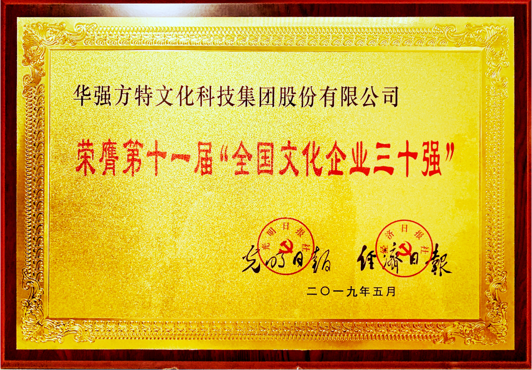 18日,由光明日報社和經濟日報社聯合發布的第十一屆“全國文化企業30強”名單在第十五屆深圳文博會上揭曉,華強方特集團憑借在文化產業開拓實踐,持續創新發展取得的亮眼成績再次榮登榜單。華強方特榮膺第十一屆“全國文化企業30強”牌匾作為榮獲九次“全國文化企業30強..