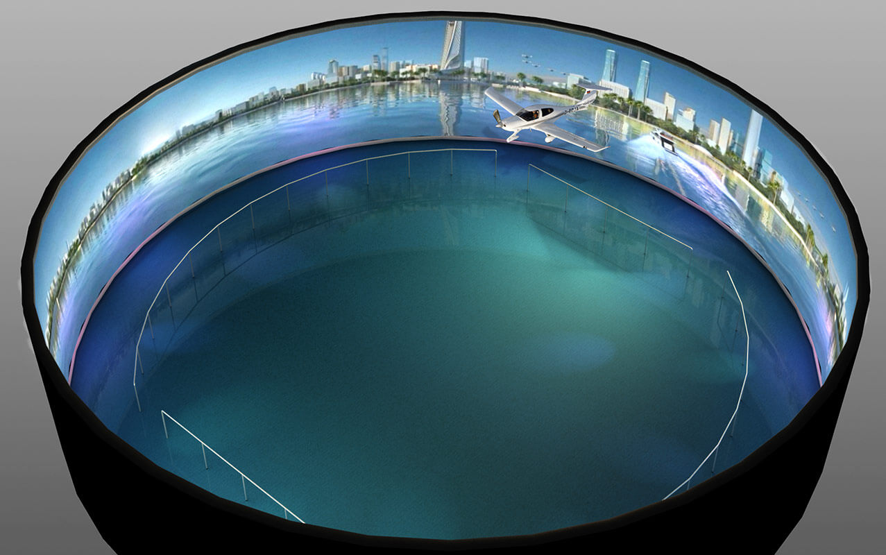 采用大直徑、高分辨率的無縫拼接立體環幕形式。影片播放時,觀眾配戴特制眼鏡觀看影,360轉盤配合環幕影片正反不停旋轉,環形的熒幕將包圍觀眾,產生強烈的身臨其境感。