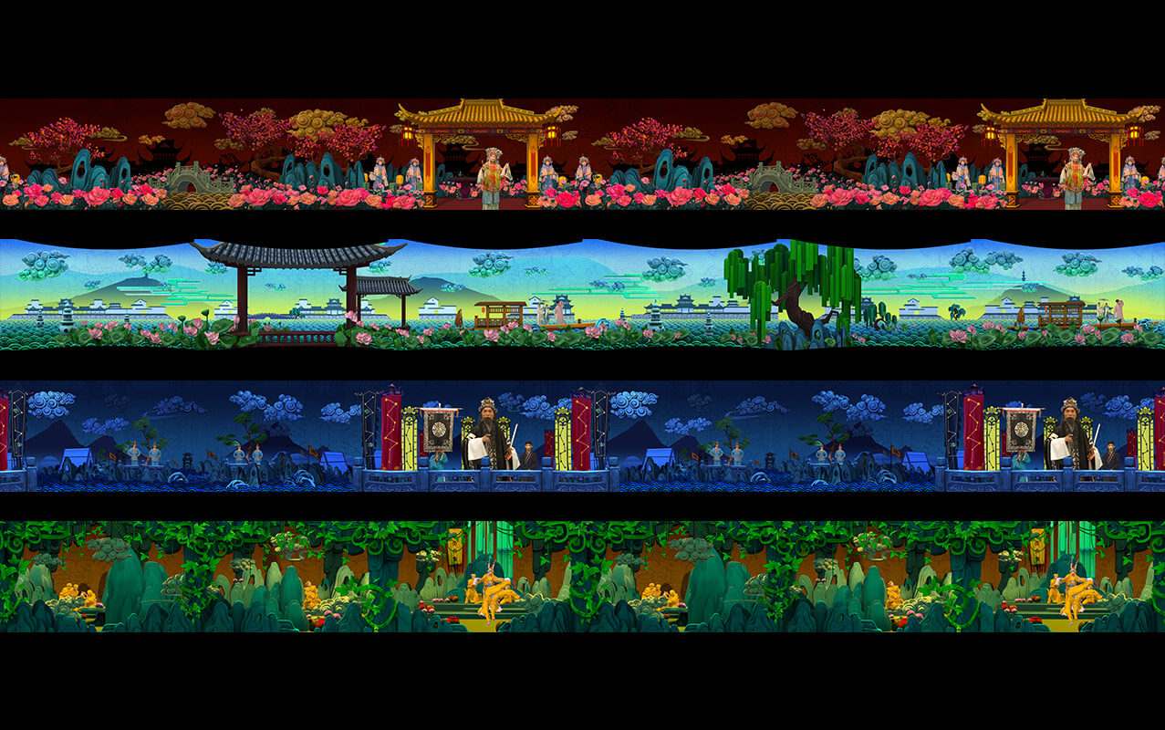 《魅力戲曲》是以讓觀眾乘坐無軌游覽車為主要形式,并把影視內容與實景相結合組成的一個室內項目,項目主體分為三大部分,排隊預演區、戲曲之城區和國粹京劇區,主要由360°立體環幕、機器人表演、環境特效裝飾和相關的影視構成。精選中國各地經典非遺戲曲曲藝節目,帶領游客領略中華戲曲的獨特魅力。